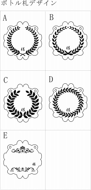 下記ボトル札デザイン(A、B、C、D、E)をご参照ください。