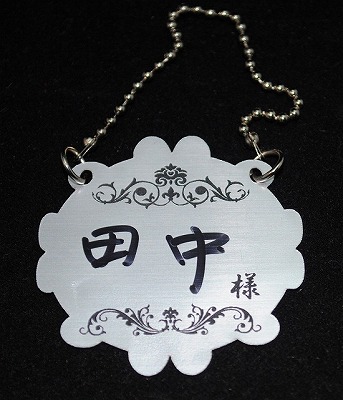 お店(飲食店など)でお客様がキープされているお酒のボトルに取り付けるネーム札です。 ボールチェーン付き(110mm程度)ですのでボトルの首の所に引っかけて使用できます。